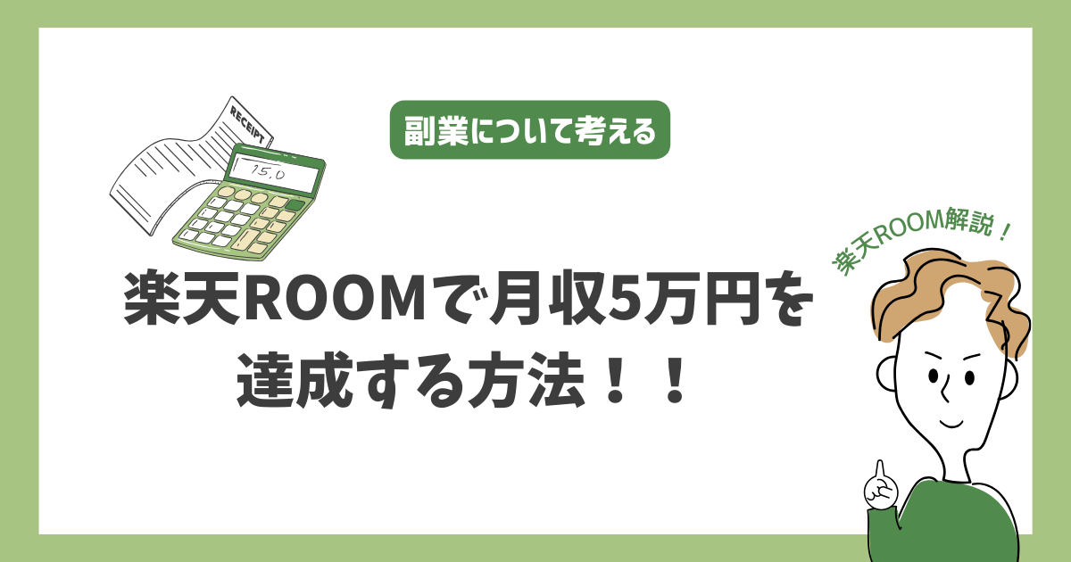 副業を始めたいけれど、何から手をつければいいかわからない方は多いでしょう。そんな方におすすめなのが「楽天ROOM」です。楽天ROOMを活用すれば、スマホひとつで手軽に商品の紹介ができ、月収5万円を目指すことも可能です。本記事では、楽天ROOMの基本から、月収5万円を稼ぐための具体的な方法まで、初心者でも分かりやすく解説します。副業としての可能性や注意点も紹介するので、これから副業を始めたい方は必見です。