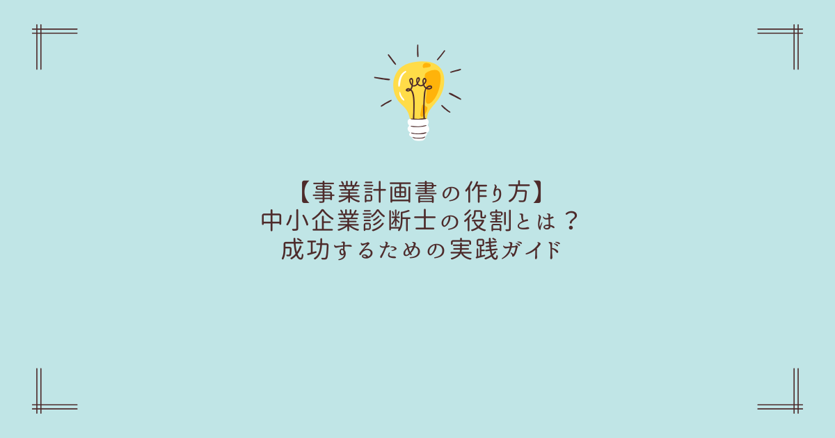 創業や新規事業、融資申請の場面で必要になる事業計画書。しかし、実際の作り方が分からず悩む方は非常に多いです。そこで重要になるのが中小企業診断士の役割です。