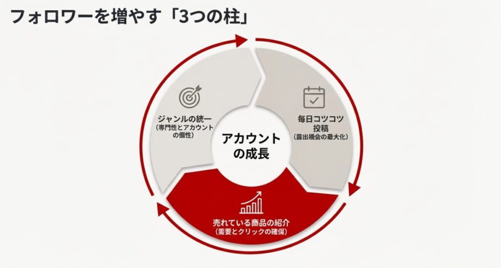 実際のところ、楽天ROOMではフォロワー数が増えるほど商品が売れやすくなります。しかし、闇雲にフォロワーを増やすだけでは成果にはつながりません。