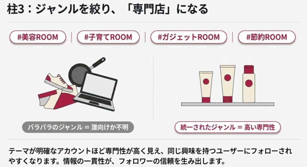 ジャンルを特定して楽天ROOMを再設計してみるね。