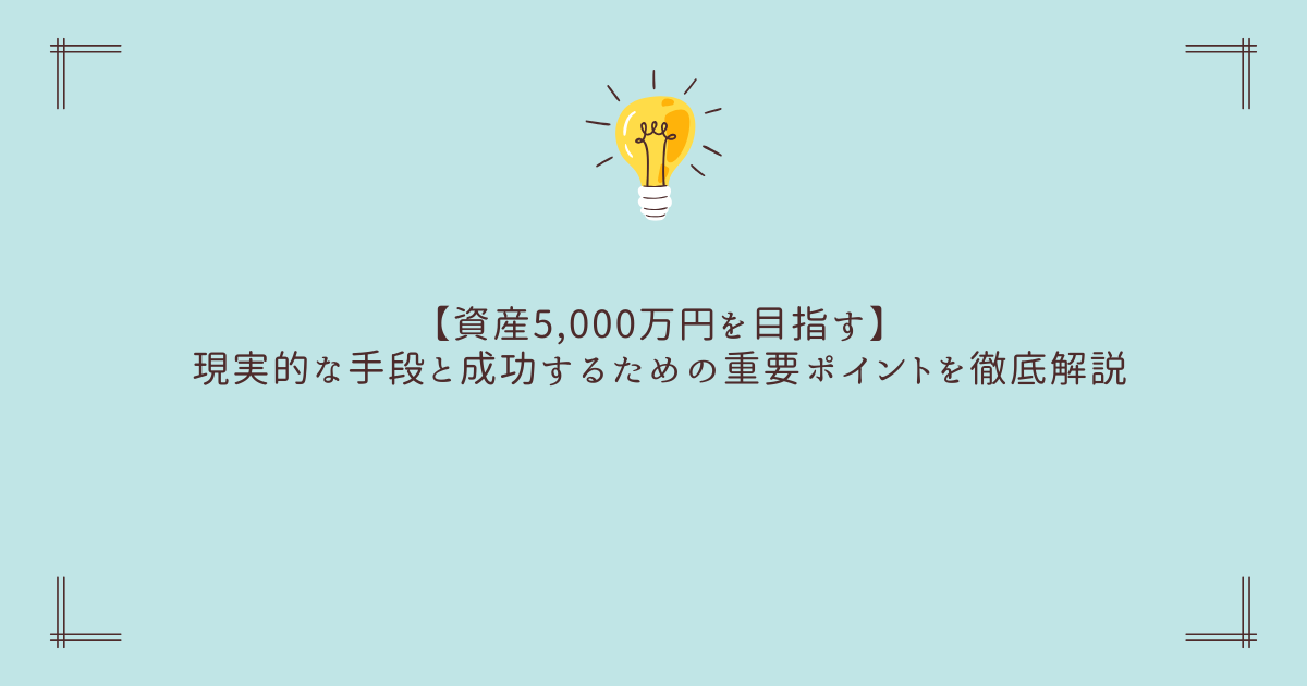 本記事では、資産5,000万円を現実的に達成するための手段と、成功率を高めるポイントを、学生にも分かるレベルで体系的に解説します。