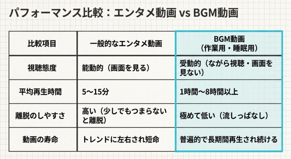 BGM動画は視聴時間が長くなる