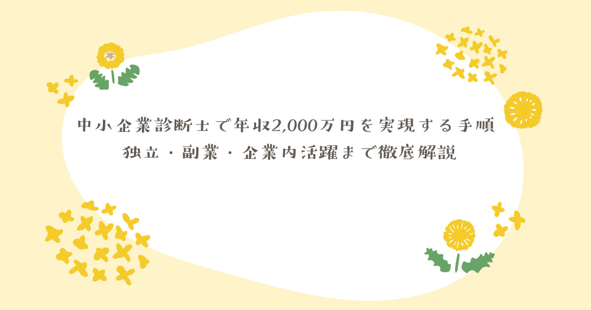 この記事で紹介した手順を順に実践することで、中小企業診断士としての価値を最大化し、独立・副業・企業内活躍を通じて高収入を実現できます。中小企業診断士で年収2,000万円を目指すなら、計画的な案件獲得と価値単価の意識が成功の鍵です。