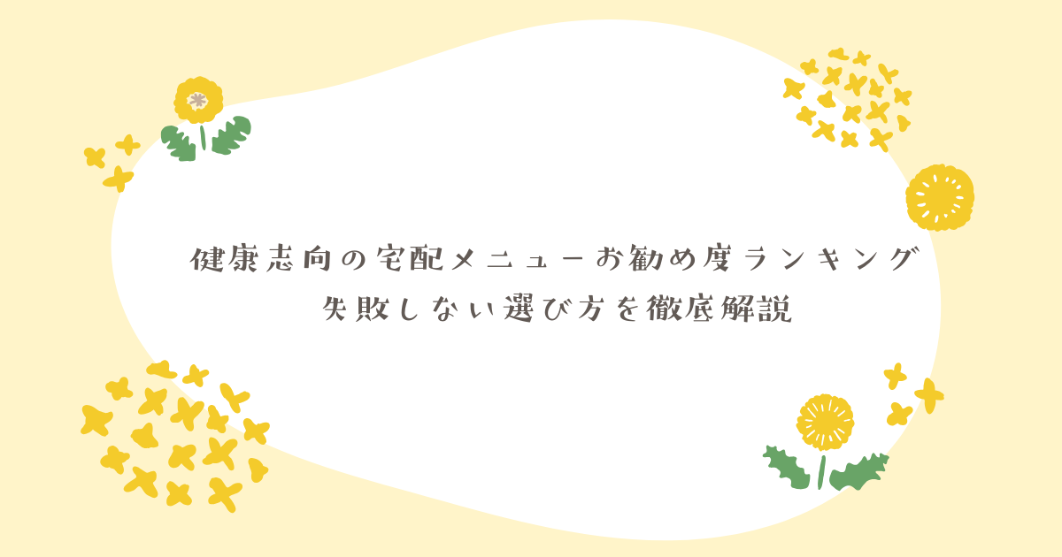 本記事では、健康志向の宅配メニューについて、注目される理由から失敗しない選び方、そして、宅配メニューお勧め度ランキングまでを解説しました。