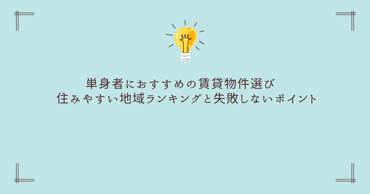 本記事では、単身者に最適な賃貸物件の選び方と、住みやすい地域を見極めるポイントをわかりやすく解説します。