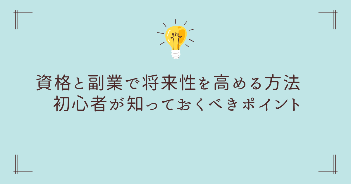 資格と副業を組み合わせることで、将来性のあるキャリア形成が可能になります。早めに行動を始め、自分のスキルと経験を積み重ねることが、安定した収入と将来性を両立させる最短ルートです。