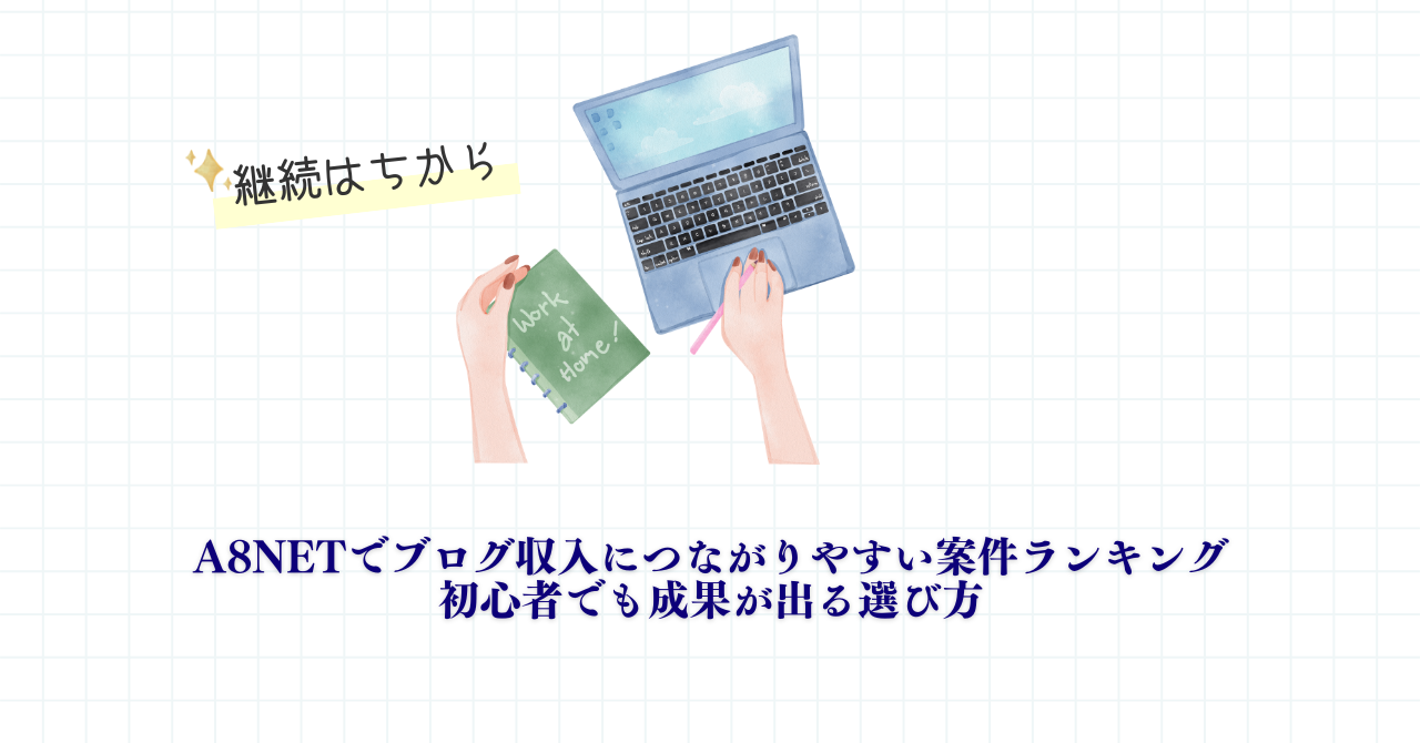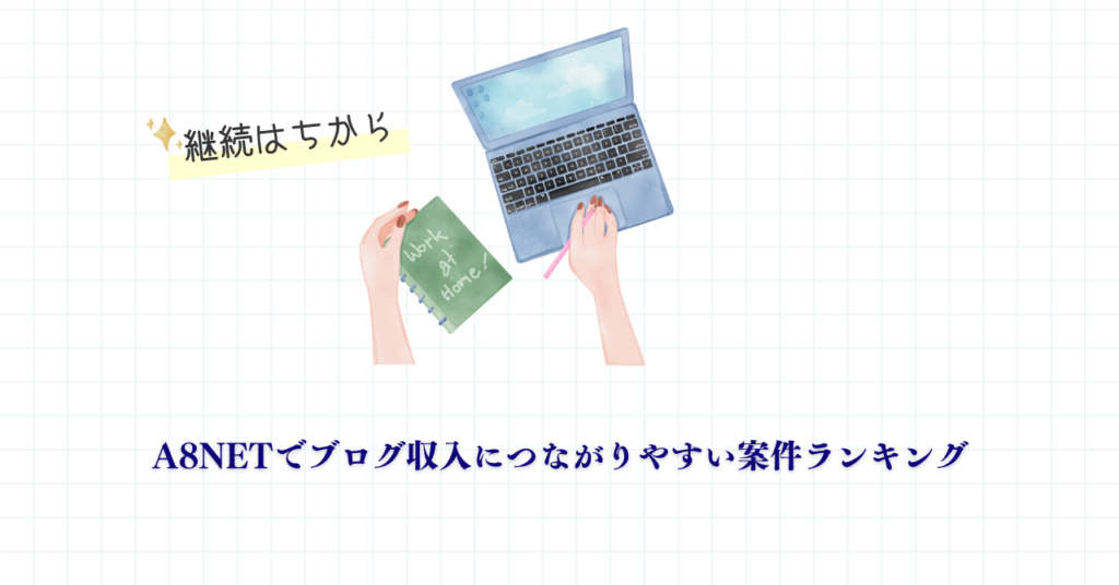 この記事では、①A8netでブログ収入につながりやすい案件の特徴、②初心者でも成果が出やすいランキング、③失敗しない案件選びの考え方を、学生でも理解できるレベルで分かりやすく解説します。